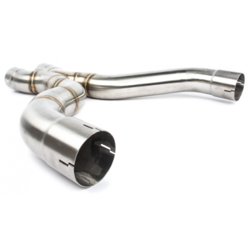 This product provides an alternative to the factory resonator section within the BMW F90 M5 exhaust. By replacing the OEM component, the kit alters the original exhaust gas flow path and acoustic damping characteristics.