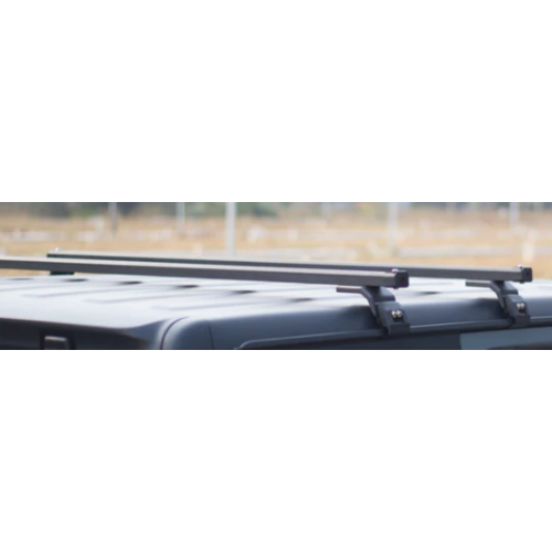 The Aluminium Crossbars are designed for the Jeep Wrangler Rubicon (2024- model year and newer). These crossbars facilitate the secure transport of cargo on the vehicle's roof.