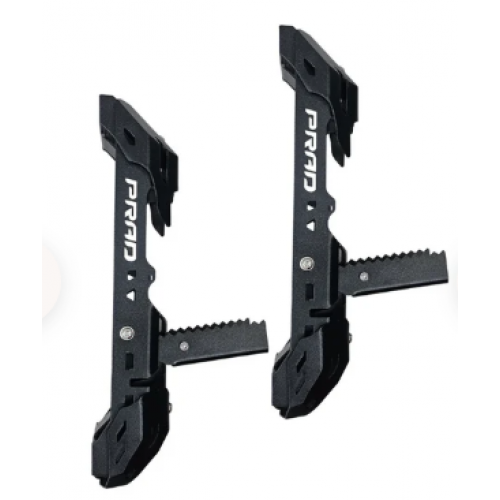 The Apex X Door Hinge Step provides a secure, supplementary platform that mounts directly to the vehicle's door hinge. This design offers an elevated point of contact, intended to aid in stepping into or out of the vehicle cabin, or to improve access to roof-mounted carriers and components.