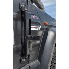 Door Hinge Step designed for Force Gurkha BS IV vehicles. Provides a stable, temporary foot platform for enhanced access to the roof or engine bay. Integrates with the existing door hinge.