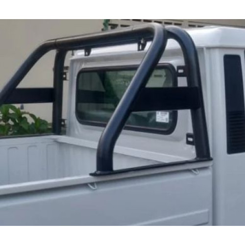The pickup sports bar provides a bolt-on structural element that mounts to the vehicle's cargo bed. It extends above the bed rails, offering a defined upper contour and potential surfaces for securing or mounting auxiliary equipment. The design integrates with the Mahindra Bolero's factory lines, providing a cohesive appearance.