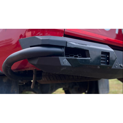 This product is a rear bumper assembly specifically designed for the Toyota Hilux, incorporating integrated protection for the vehicle's rear fenders. It serves as a direct replacement or upgrade for the factory rear bumper system. Standard factory rear bumpers often provide limited structural protection against impacts sustained during off-road operation, cargo loading and unloading, or minor rear-end collisions. The rear fenders, being part of the bodywork, are particularly susceptible to deformation or damage from these types of incidents, leading to potential structural compromise, cosmetic deficiencies, and the necessity for repair or replacement of body panels.