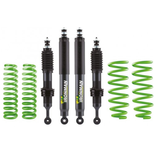 The Ironman 4x4 Foam Cell PRO Lift Kit for the Toyota LC 200 Series and Lexus LX 570 (2007-2015) is a professional-grade suspension system engineered for the ultimate in load carrying and off-road performance. Featuring an oversized, twin-wall shock absorber design with integrated foam cell technology, this system eliminates cavitation by separating gas from the hydraulic fluid, ensuring consistent damping and superior shock cooling under extreme stress. Built with a massive 3mm steel body and spring seat, it is matched with heavy-duty suspension springs for maximum control and stability. Technical specifications include a massive 18mm rod, 40mm piston, and a 64mm shock body. Australian-engineered and specifically tuned for the LC200 platform, the kit includes all essential shocks, springs, and bushes. Backed by a 4-year unlimited kilometer warranty.
